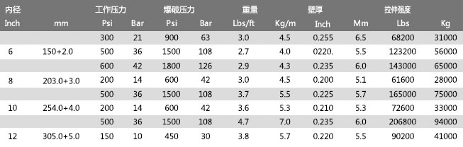 建議使用的最大工作壓力:上述爆破壓力值的50%(短暫使用)。為了保證軟管的最長使用壽命,建議工作壓力或拉伸力不要超過上述參數(shù)值的1/3。